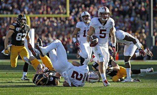 McCaffrey leads Stanford's 45-16 Rose Bowl romp over Iowa