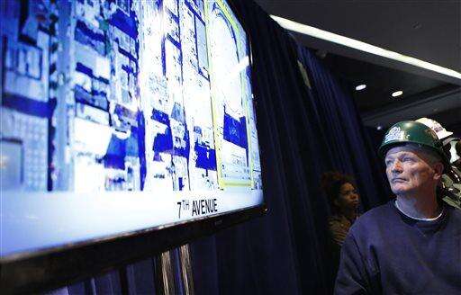 A construction worker looks at plans for the overhaul of Pennsylvania Station during a press conference led by New York Gov. Andrew Cuomo, Wednesday, Jan. 6, 2016, in New York. Cuomo announced that work will commence immediately on the overhaul of Pennsylvania Station at Madison Square Garden, Wednesday, Jan. 6, 2016, in New York. (AP Photo/Kathy Willens) The Associated Press