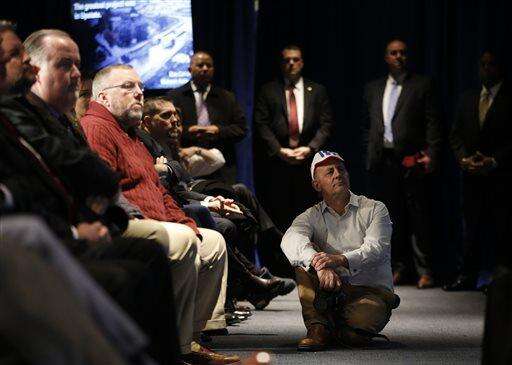 Construction workers listen to New York Governor Andrew Cuomo as he describes the planned overhaul of Pennsylvania Station during a press conference announcing that work will commence immediately on the overhaul of Pennsylvania Station at Madison Square Garden, Wednesday, Jan. 6, 2016, in New York. (AP Photo/Kathy Willens) The Associated Press