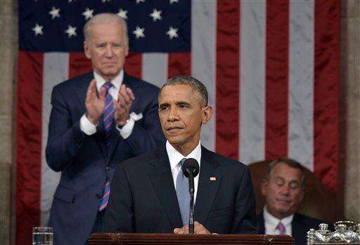 FILE - In this Jan. 20, 2015, file photo, President Barack Obama delivers his State of the Union address to a joint session of Congress on Capitol Hill in Washington, as Vice President Joe Biden applauds and House Speaker John Boehner of Ohio listens. Obama had some high profile victories last year, but his State of the Union proposals were not among them. (AP Photo/Mandel Ngan, Pool) The Associated Press