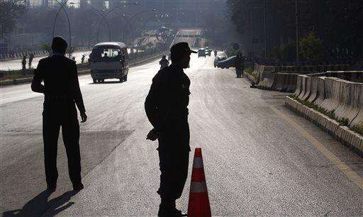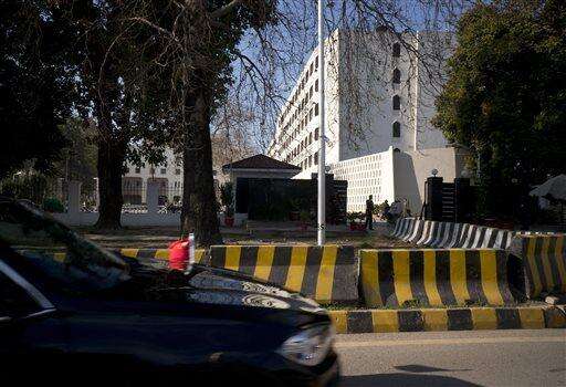 Pakistani police officers stand at a checkpoint outside the Foreign Ministry where a conference for Afghan peace process is going on, Monday, Jan. 11, 2016 in Islamabad, Pakistan. A key gathering opened on Monday in the Pakistani capital of Islamabad in which four major countries - Afghanistan, Pakistan, China and the United States - hope to lay the roadmap to peace for the war-shattered Afghan nation. (AP Photo/Anjum Naveed) The Associated Press