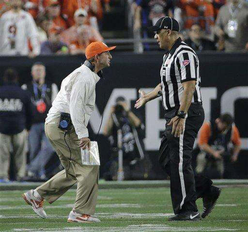 Clemson coach Dabo Swinney was not happy with the clock operator and officials at the end of the half. The Tigers completed a pass for a first down to the Alabama 27 with 15 seconds showing on the clock. The clock stopped for a first down, but restarted so fast it was rolling before Deshaun Watson could stop it with a spike.