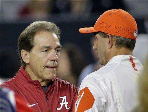 Alabama is taking part in its 10th 1 vs. 2 game - and is ranked No. 2 going in for the eighth time. The Crimson Tide are 5-2 in such games with four of the wins giving them national titles. Their record as the No. 1 team against a No. 2 is 1-1, the win giving them another national crown.