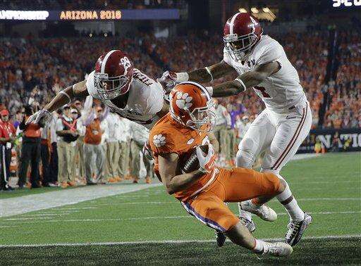 GLENDALE, Ariz. (AP) - The latest developments from the College Football Playoff national championship game between Clemson and Alabama (all times local):