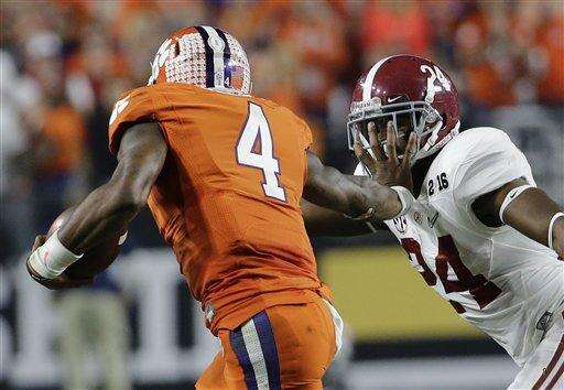 Clemson's defense took another hit when it was announced cornerback Mackensie Alexander would not return to the game after being helped off the field late in the first half. He had a hamstring injury but started the game.