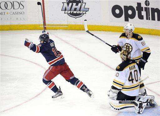 New York defenseman Ryan McDonagh worked the puck along the left boards and shoveled it to Zuccarello. He worked his way toward the net and flipped the puck to the crease past Rask and defenseman Torey Krug to a wide-open Brassard for his 15th goal.