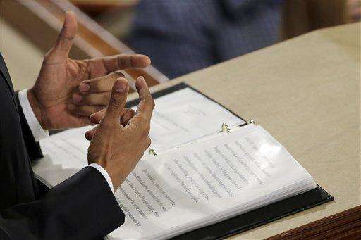 Obama is discussing the failure to change the U.S. political system as he delivers his final State of the Union address. He says the rancor and suspicion between parties has gotten worse, not better.