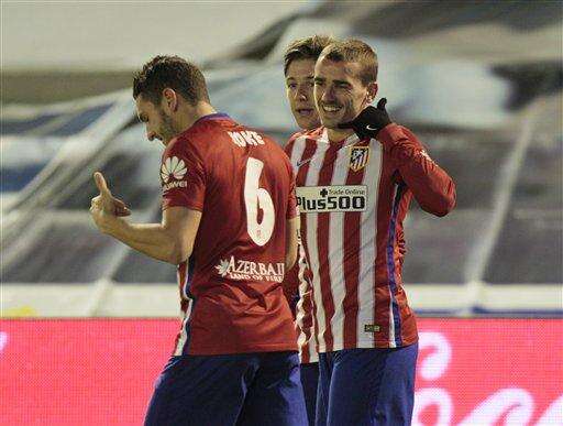 Atletico Madrid’s Antoine Griezmann celebrates after scoring a goal during a Spanish La Liga soccer match between Celta Vigo and Atletico Madrid at the Balaidos stadium in Vigo, Spain Sunday Jan. 10, 2016. (AP Photo/Lalo R. Villar) The Associated Press