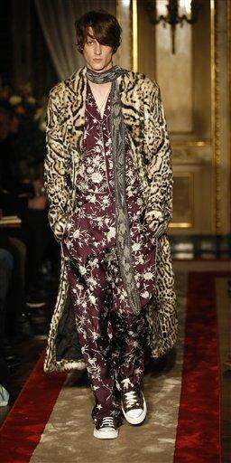 MILAN (AP) - David Bowie's pioneering rock 'n' roll femininity is gaining currency, still after decades, on fashion runways and was strongly evident in Peter Dundas' menswear premier for the Roberto Cavalli fashion house.