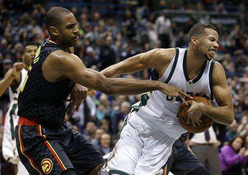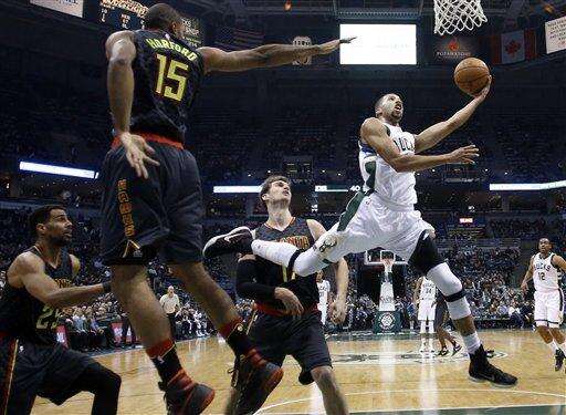 Khris Middleton scored 26 points and Greg Monroe and Michael Carter-Williams added 15 points apiece for the Bucks, who won the first matchup between the teams this season. Carter-Williams also blocked Jeff Teague's shot at the horn, sending the game into overtime.