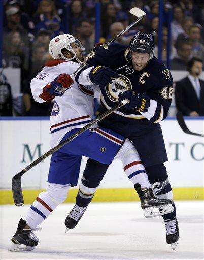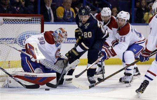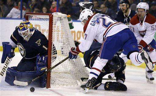 NOTES: On Friday, Montreal traded D Jarred Tinordi and F Stefan Fournier to the Arizona Coyotes for D Victor Bartley and F John Scott. The Canadiens assigned F Sven Adrighetto and Daniel Carr to the St. John's IceCaps and recalled Jacob De La Rose. ... Montreal F Dale Weise returned after missing four games with an upper-body injury. ... The attendance of 19,501 was the Blues' 11th sellout of the season.