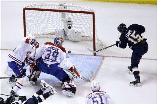 The Blues scored just 34 seconds in when Fabbri collected his own rebound after Condon couldn't locate the puck. It was the rookie's 11th of the season. Vladimir Tarasenko and Lehtera had the assists on the goal, which was challenged by the Canadiens for goalie interference but upheld.