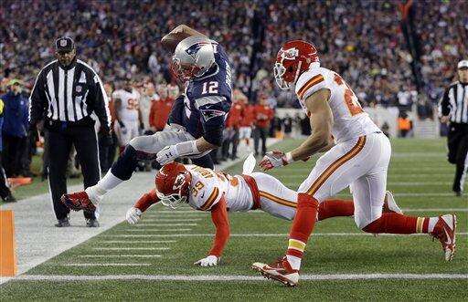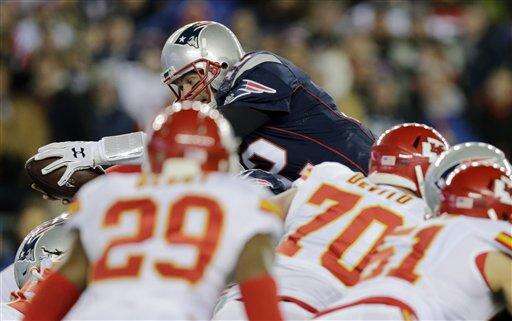 Brady led New England to a score on the opening drive, throwing 11 straight passes and completing eight - the last an 8-yard score to Gronkowski. The Chiefs then made it to the Patriots 16, but settled for a field goal.