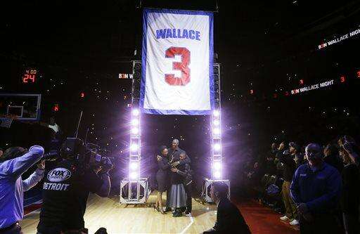 Detroit retired Ben Wallace's No. 3 jersey at halftime, and by that time the Pistons led 65-49 on a raucous night at the Palace.