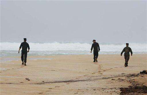 Coast Guard spokesman Lt. Scott Carr said Friday that the high surf made the search and rescue effort "incredibly difficult." He says the swells were dispersing crash debris.