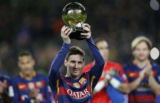 Lionel Messi presented his record fifth Ballon d'Or award to his fans before kickoff at Camp Nou. He then converted a penalty to put Barcelona on its way before being substituted at halftime because of what coach Luis Enrique called "slight pain" without giving further details.