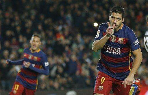 Neymar dribbled through the defense to provide an assist for Rakitic before Suarez steered in Arda Turan's pass in the 68th and then headed home Sergio Busquets's cross with eight minutes to play.