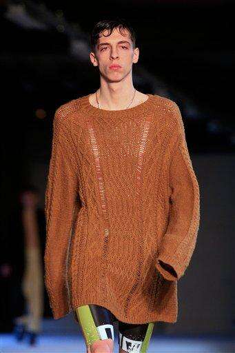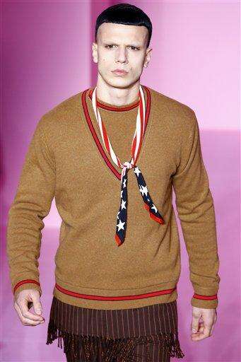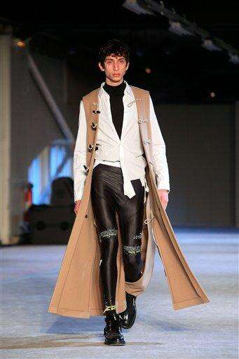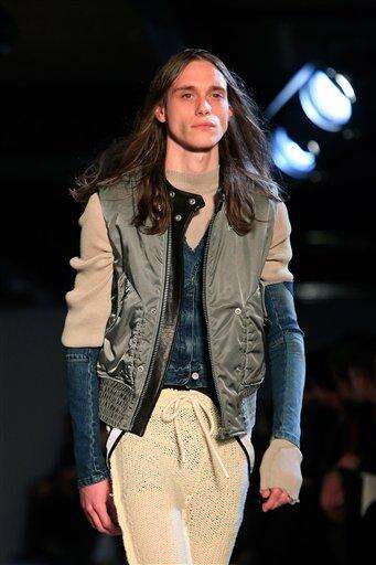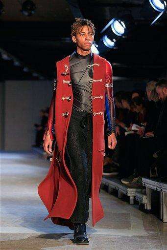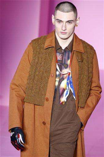 A model wears a creations by designer Cerruti as part of the men's Fall-Winter 2016/2017 fashion collection presented in Paris, Friday, Jan. 22, 2016. (AP Photo/Thibault Camus) The Associated Press