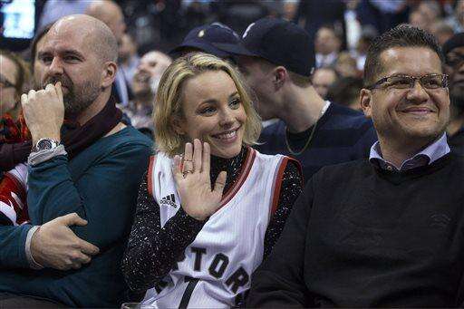 Actress Rachel McAdams waves from her seat as the Toronto Raptors take on the Miami Heat during an NBA basketball game Friday, Jan. 22, 2016, in Toronto. (Chris Young/The Canadian Press via AP) The Associated Press