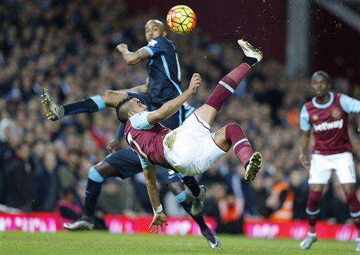 West Ham remained sixth, six points behind Tottenham, which occupies the fourth Champions League place. The east London club is enjoying its best run in the league in 19 years in its final season at Upton Park before moving to the nearby Olympic Stadium.