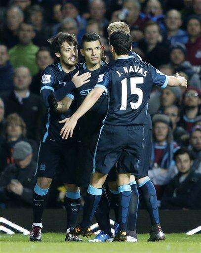 LONDON (AP) - Sergio Aguero twice came to Manchester City's rescue with the team's only shots on target to recover a 2-2 draw at West Ham on another frustrating away-day for the title-chasers on Saturday.