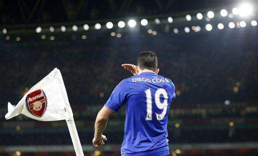 Chelsea's Diego Costa walks away from the corner flag during the English Premier League soccer match between Arsenal and Chelsea at the Emirates stadium in London, Sunday, Jan. 24, 2016.(AP Photo/Frank Augstein) The Associated Press