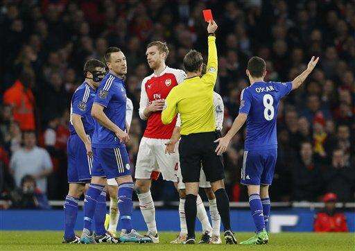 LONDON (AP) - Long resigned to surrendering the trophy, Chelsea made its impact on the top of the table Sunday by inflicting 10-man Arsenal's first home loss since the opening day of the Premier League season.