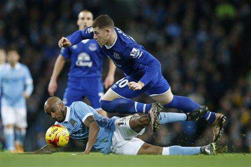 Protecting a 2-1 lead from the first leg, Everton went further ahead on aggregate when Ross Barkley scored from long range in the 18th minute. The England midfielder seemingly found space every time he was on the ball and for the goal, he picked up the ball unmarked before drifting past a weak attempted challenge from Nicolas Otamendi, surged at the heart of City's defense and drilled home a low shot.