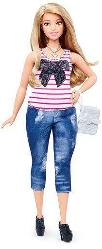 This photo provided by Mattel shows a new, curvy Barbie Fashionista doll introduced in January 2016. Mattel, the maker of the famous plastic doll, said it will start selling Barbie’s in three new body types: tall, curvy and petite. She’ll also come in seven skin tones, 22 eye colors and 24 hairstyles. (Mattel via AP) The Associated Press