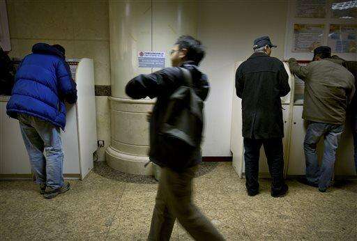 Chinese investors use computer terminals to check stock prices in a brokerage house in Beijing, Thursday, Jan. 28, 2016. Asian stock markets wavered Thursday after the Federal Reserve sounded a note of caution on the world economy and its effect on U.S. growth but left the door open for rate hikes. (AP Photo/Mark Schiefelbein)