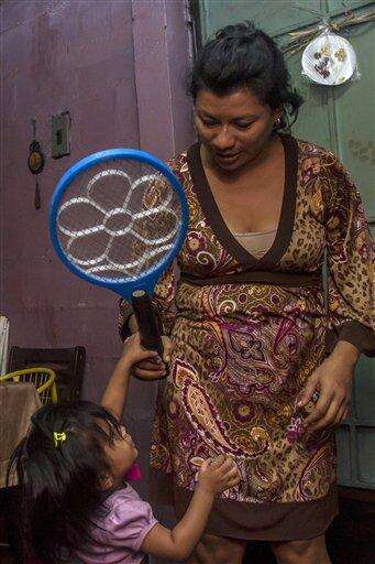 In this Jan. 29, 2016 photo, Guadalupe Urquilla, who is pregnant, gives her daughter Alejandra, 2, a mosquito zapper in their home in San Salvador, El Salvador. As the Zika virus spreads through the hemisphere, authorities in El Salvador have urged women to put off pregnancy for two years. In the meantime, Urquilla has traded her dresses for long pants and closed shoes, scrubs out the familyís concrete water tank every three days, and writes San Salvador city officials ceaselessly, demanding that they fumigate the trash- and debris-strewn public housing complex where she lives with her husband and daughter. (AP Photo/Salvador Melendez) The Associated Press