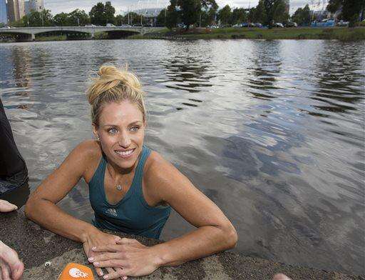 Kerber's upset three-set victory over Serena Williams on Saturday was followed by a Sunday morning plunge in the river near Rod Laver Arena.