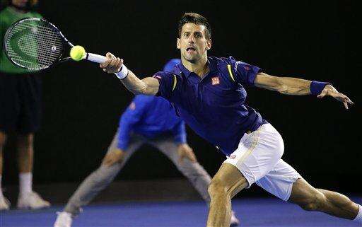 Novak Djokovic of Serbia plays a forehand return to Andy Murray of Britain during the men's singles final at the Australian Open tennis championships in Melbourne, Australia, Sunday, Jan. 31, 2016.(AP Photo/Aaron Favila) The Associated Press