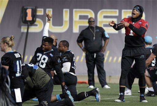 Carolina Panthers quarterback Cam Newton (1) prepares for stretches during practice Wednesday, Feb. 3, 2016 in San Jose, Calif. Carolina plays the Denver Broncos in the NFL Super Bowl 50 football game Sunday, Feb. 7, 2015, in Santa Clara, Calif. (AP Photo/Marcio Jose Sanchez) The Associated Press