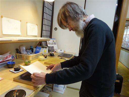 David Bull, who moved from Canada to Japan in 1986 to become a printmaker, owns the Mokuhankan studio and offers "print parties" to tourists.