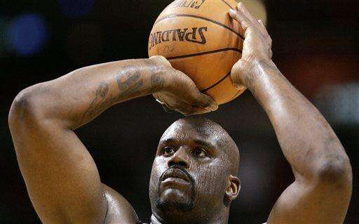 FILE - In this March 9, 2007, file photo, Miami Heat center Shaquille O'Neal shoots a free throw during an NBA basketball game in Miami. Hack-a-Shaq, the tactic of fouling bad foul shooters on purpose to send them to the line and slow their team's offense to a crawl, used to be a laughing matter. It isn't anymore, and has raised the ire of everyone from booing fans to NBA Commissioner Adam Silver himself and will likely be something the league tries to curb in the coming months. (AP Photo/J. Pat Carter, File) The Associated Press