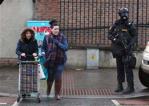 Armed Gardai from the force's Emergency Response Unit on patrol, as gang violence has resulted in two murders in four days, in Dublin, Ireland, Tuesday, Feb. 9, 2016. As Dublin's gangland tensions deepened, Ireland's justice minister urged gang members to seek police protection Tuesday after gunmen shot to death the brother of a Dublin crime kingpin in apparent retaliation for last week's deadly attack on a boxing ceremony. Police have put in roadblocks, increased surveillance on high-profile targets and placed an imprisoned relative of a crime boss into protective custody. (Niall Carson/PA via AP) UNITED KINGDOM OUT - NO SALES - NO ARCHIVES
