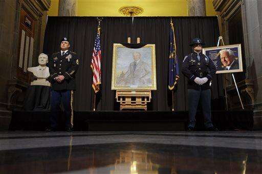 State troopers and Indiana National Guard members took turns Thursday afternoon in an honor guard alongside Whitcomb's official portrait from his time as governor from 1969 to 1973. Visitors to the rotunda could sign condolence books.