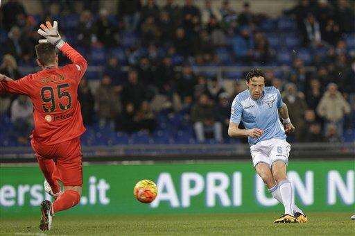 Lazio’s Stefano Mauri scores a goal during a Serie A soccer match between Lazio and Hellas Verona at Rome's Olympic stadium, Thursday, Feb. 11, 2016. (AP Photo/Alessandra Tarantino) The Associated Press