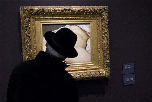 A visitor looks at Gustave Courbet's 1866 "The Origin of the World," painting which depicts female genitalia at Orsay museum, in Paris, France, Friday, Feb. 12, 2016. Facebook lost a crucial legal battle Friday as a Paris court ruled the social network can be sued in France over its decision to remove the account of a French user who posted a photo of Courbet's famous 19th-century nude painting. (AP Photo/Francois Mori) The Associated Press