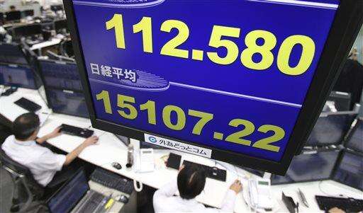 Money trader works at a foreign exchange brokerage in Tokyo, Friday, Feb. 12, 2016. Japanese shares were weighed down by a surge in the yenâs value to 110.99 yen against the dollar, though that gain largely evaporated by the time trading began in Asia on Friday. A stronger yen is viewed as a risk for Japanese exporters whose planning has been premised on a much weaker level of about 118 yen to the dollar, analysts say. In currency trading on Friday, the dollar edged lower to 112.24 yen from 112.29 the previous day. (AP Photo/Koji Sasahara)