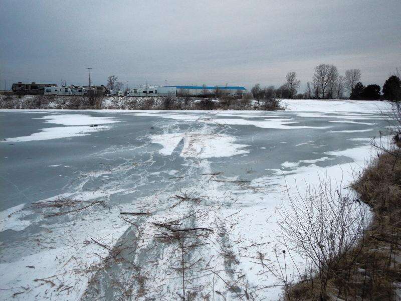 Just 12 minutes earlier, police responded to the area of Freeman Road and Factory Shops Boulevard where a 2003 Saturn traveling west on Freeman Road had struck a traffic signal, careened off the roadway and skidded across a frozen pond. The two crashes were less than a mile apart.