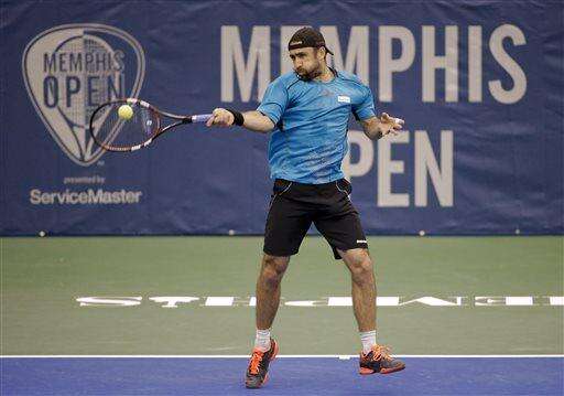 Ricardas Berankis, of Lithuania, returns a shot to Donald Young in a quarterfinal at the Memphis Open tennis tournament Friday, Feb. 12, 2016, in Memphis, Tenn. (AP Photo/Mark Humphrey) The Associated Press