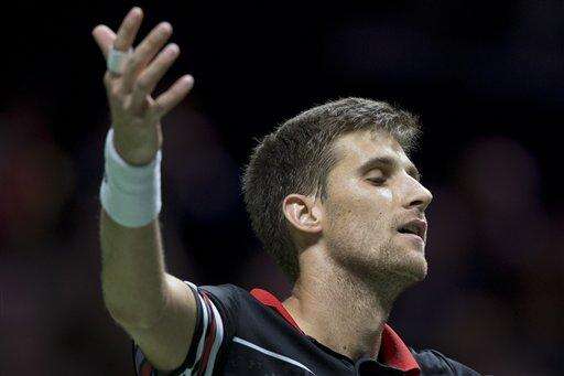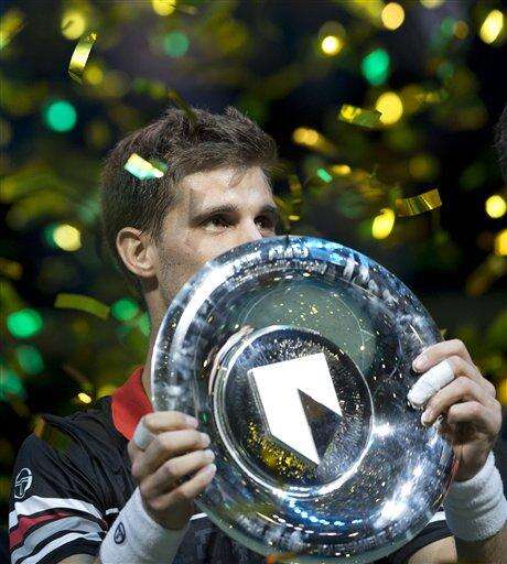 ROTTERDAM, Netherlands (AP) - This time Martin Klizan did not save any match points. But he still had to rally past fifth-seeded Gael Monfils 6-7 (1), 6-3, 6-1 to win the indoor World Tennis Tournament on Sunday.