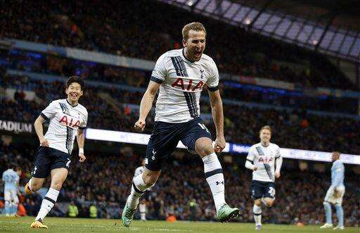 MANCHESTER, England (AP) - Tottenham's first top-flight title challenge in a generation gathered further momentum with a landmark 2-1 win at Manchester City in the Premier League on Sunday, with Christian Eriksen scoring a late winner on his birthday.