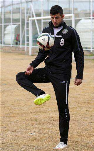 In this Saturday, Feb. 6, 2016 photo, Soccer player Ayman Hussein trains in Baghdad, Iraq. Islamic State militants drove Hussein from his home. Eighteen months later, he sent Iraq’s soccer team to the Olympics. Hussein kicked the game-winning goal against Qatar last month in a qualifying match, uniting Iraqis in a rare moment of triumph and becoming a national celebrity. But his journey to Brazil has been marked by the same violence and displacement that have shattered the lives of so many of his fans. (AP Photo/Hadi Mizban) The Associated Press