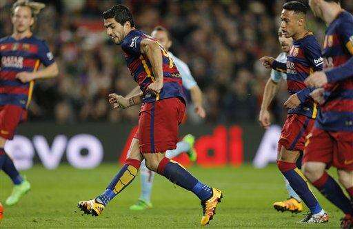 Messi took the spot-kick on Sunday but, instead of a shot, he simply rolled the ball to the side for Suarez, who rushed in from outside of the box to easily score past the Celta Vigo goalkeeper.