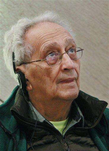 U.S. artist Frank Stella attends a press conference before the opening of at an exhibition devoted to him in Warsaw, Poland, Thursday, Feb. 18, 2016. "Frank Stella and the Synagogues of Historic Poland" opens Friday at the POLIN Museum of the History of Polish Jews and will run through June 20. It showcases abstract works that he created in the 1970s which were inspired by pre-World War II wooden synagogues in Poland. (AP Photo/Czarek Sokolowski)