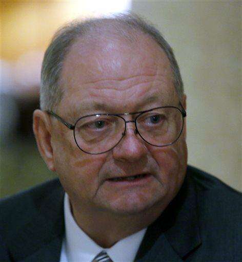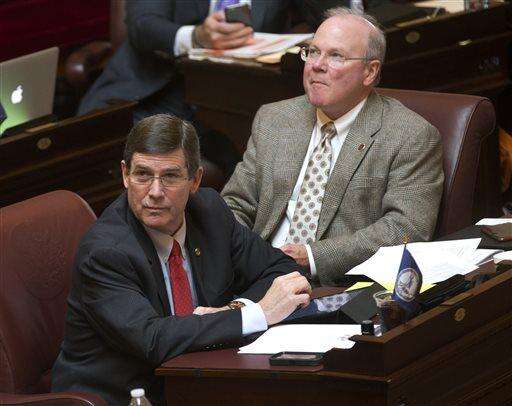 State Sen. John Cosgrove, R-Chesapeake, bottom left, and Sen. Ben Chafin, R-Russell, right, watch the proceedings on the floor of the Virginia Senate during the session at the Capitol in Richmond, Va., Thursday, Feb. 18, 2016. Cosgrove is sponsor of a bill that would exempt the names and training records of law enforcement officials from Freedom of Information Act requests. (AP Photo/Steve Helber) The Associated Press