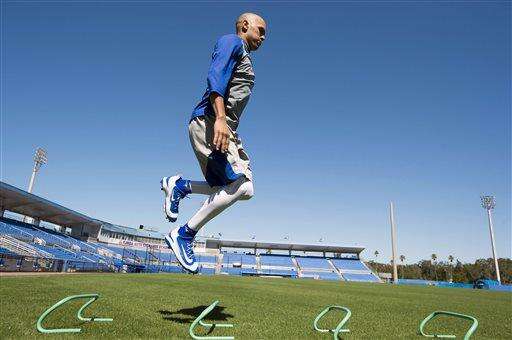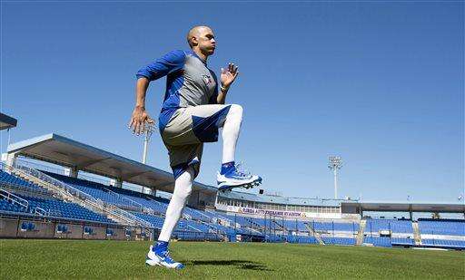 Toronto Blue Jays Ryan Goins works out during spring training baseball practice Thursday, Feb. 18, 2016, Dunedin, Fla. (Frank Gunn/The Canadian Press via AP) MANDATORY CREDIT
